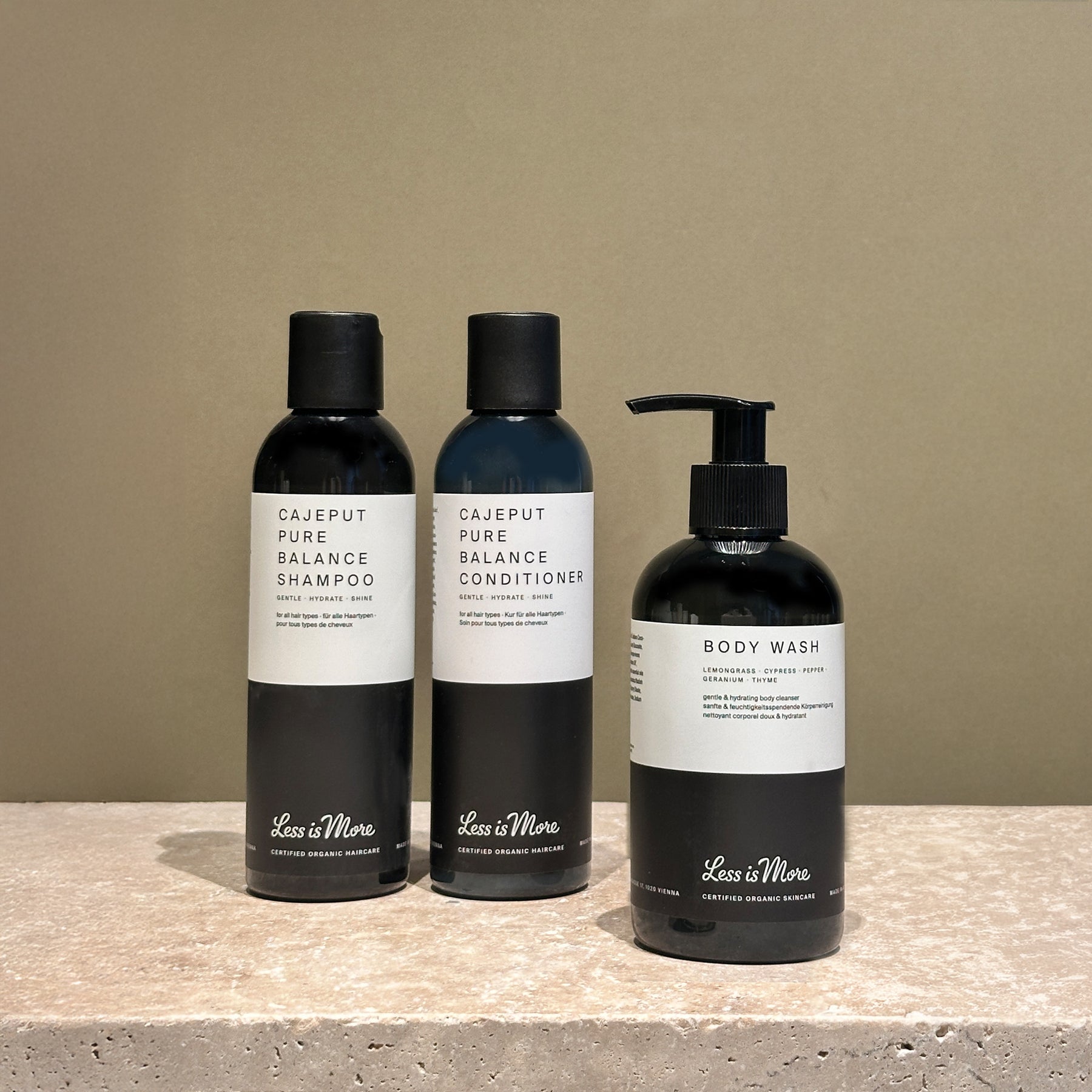 cajeput pure balance shampoo & conditioner · body wash lemongrass cypress