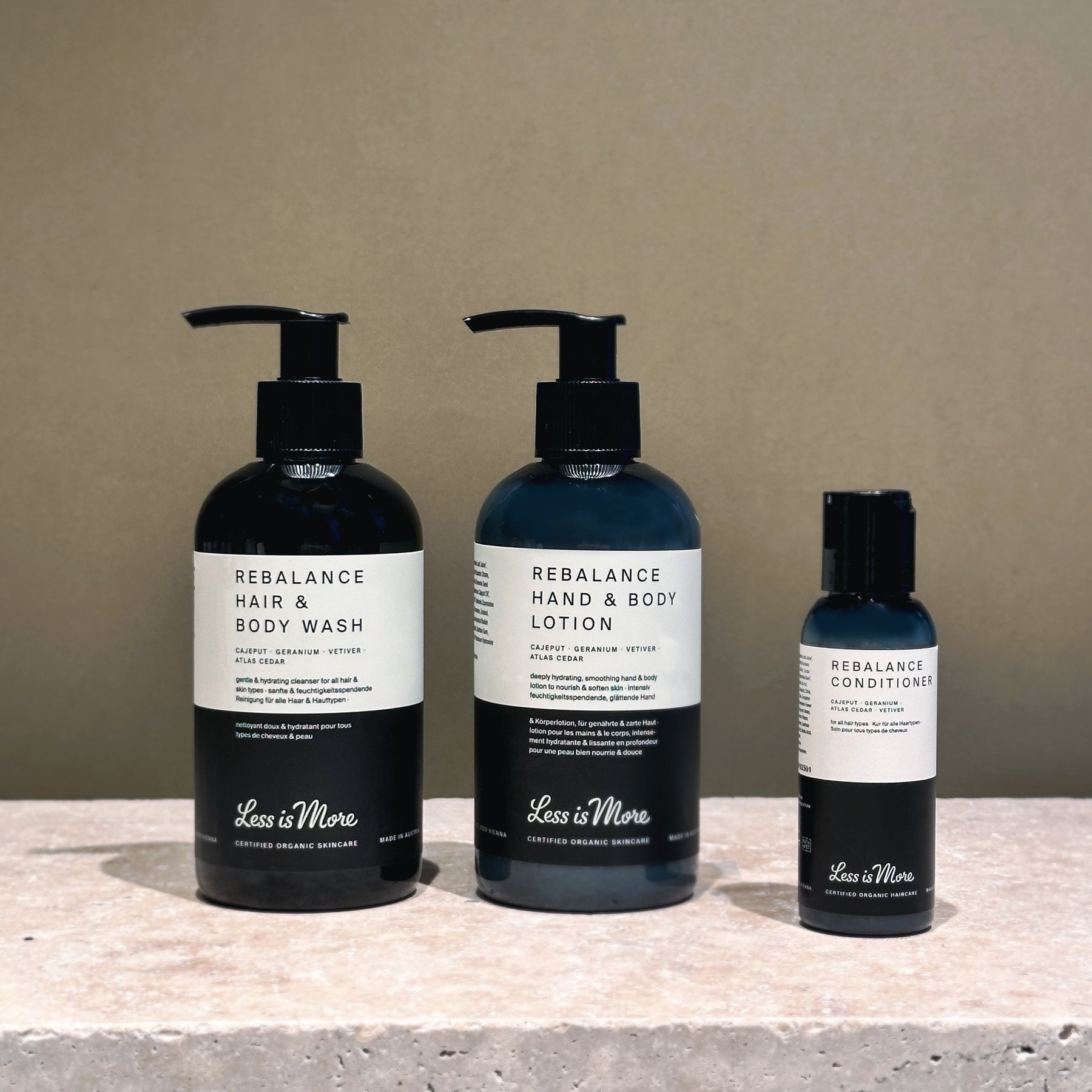 With Less is More, chemist Dr. Doris Brandhuber and hair stylist Hannes Trummer created a hair care line that is extremely effective, respects the environment and boasts innovative formulations, all in one bottle. Both session and salon stylists, international press and clients around the world value the award-winning products for their sustainability and exclusivity.